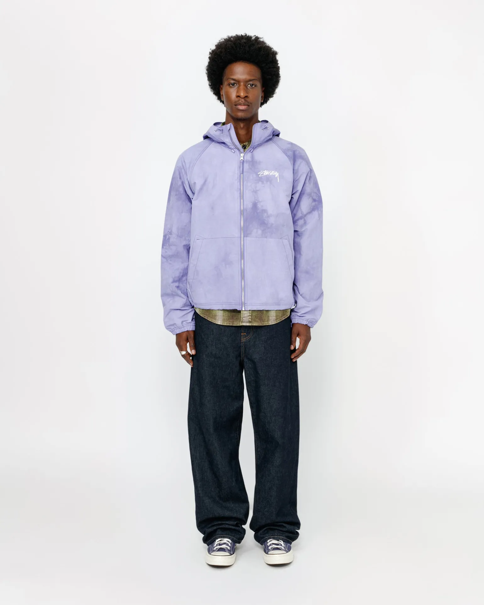 Weite Shell-Jacke aus strukturiertem Wave-Dyed-Nylon. Mit Reißverschluss an der Vorderseite und verstellbaren Kordelzügen an Kapuze und Saum. Gedrucktes Stüssy Smooth Stock Logo auf der linken Brust und auf dem Rücken.