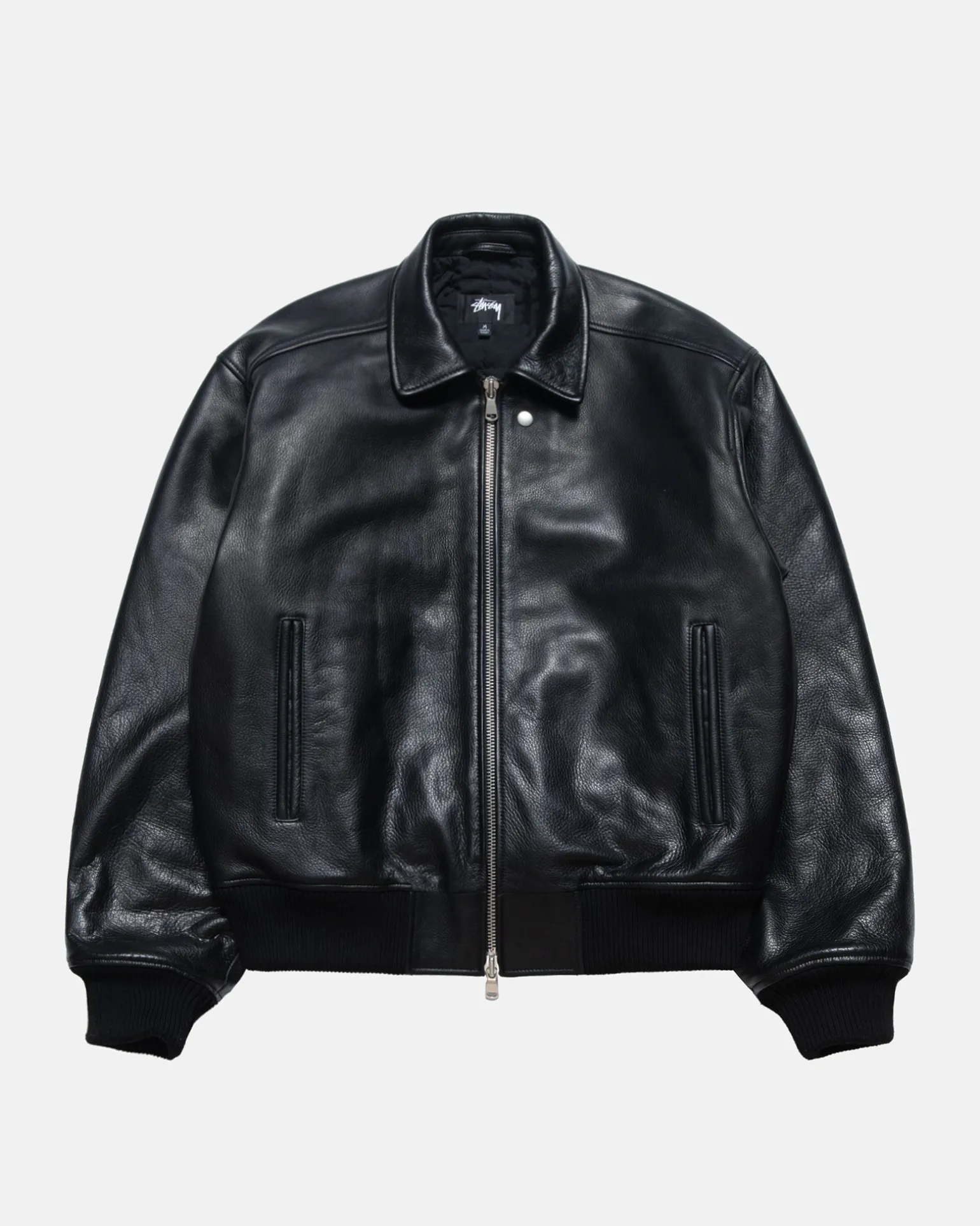 Weit geschnittene Fliegerjacke aus Leder mit gesteppter Wattierung. Mit Reißverschluss vorn, doppelten Leistentaschen und Gerippungen an Bündchen und Saum. Stüssy swirly „S“-Prägung auf dem Reißverschluss.