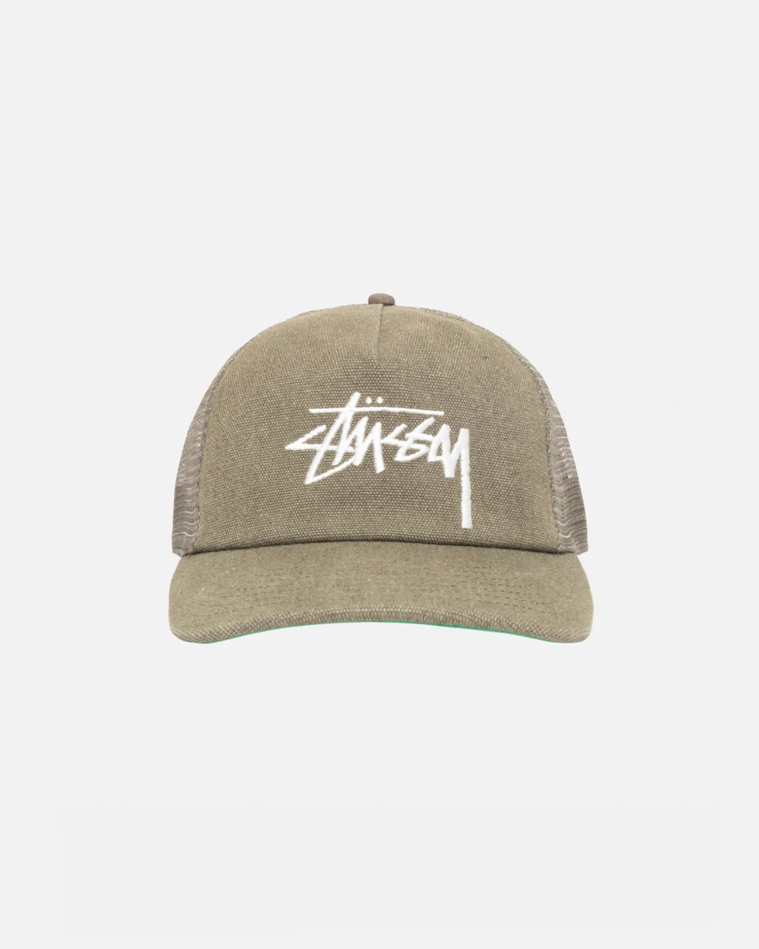 Mid-Tiefe Kappe mit fünf Panels aus Baumwoll-Twill mit Netz. Gesticktes Stüssy Stock-Logo auf der Vorderseite.