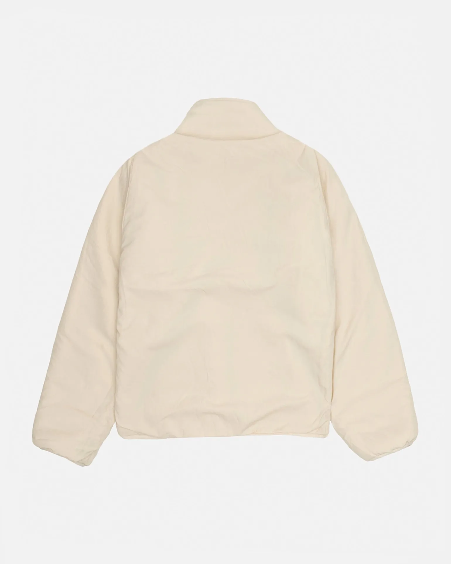 Klassisch geschnittene Wendejacke. Außenseite aus Sherpa-Fleece mit Reißverschluss, Nylontaschen und gesticktem Stüssy Stock Logo. Innenseite aus Nylon mit Leistentaschen und Stüssy Stock Logo auf der Brust.