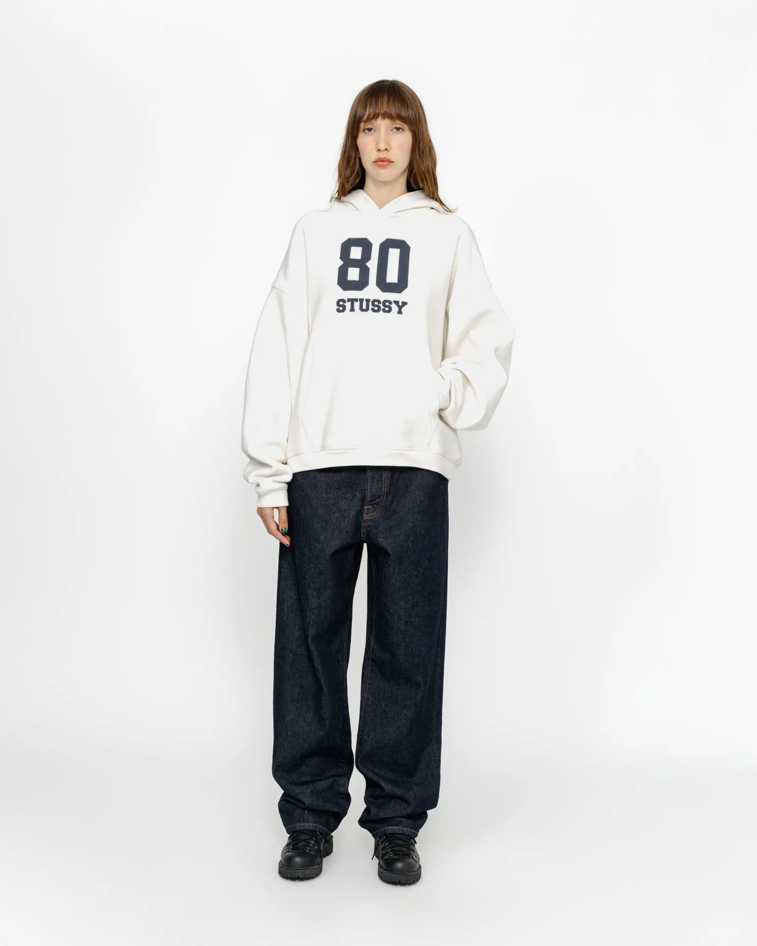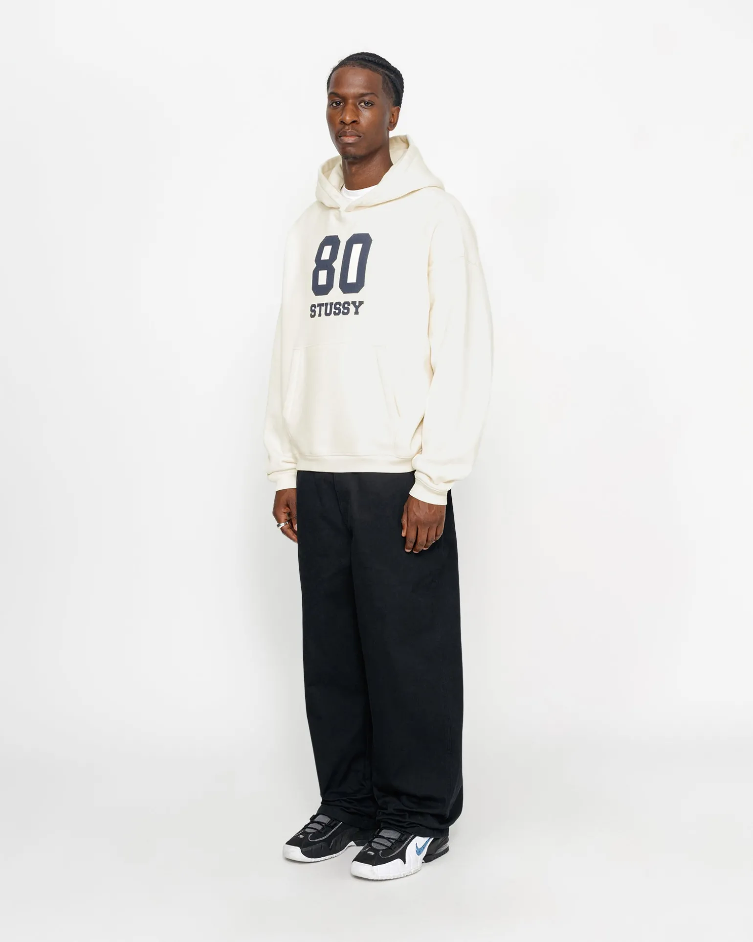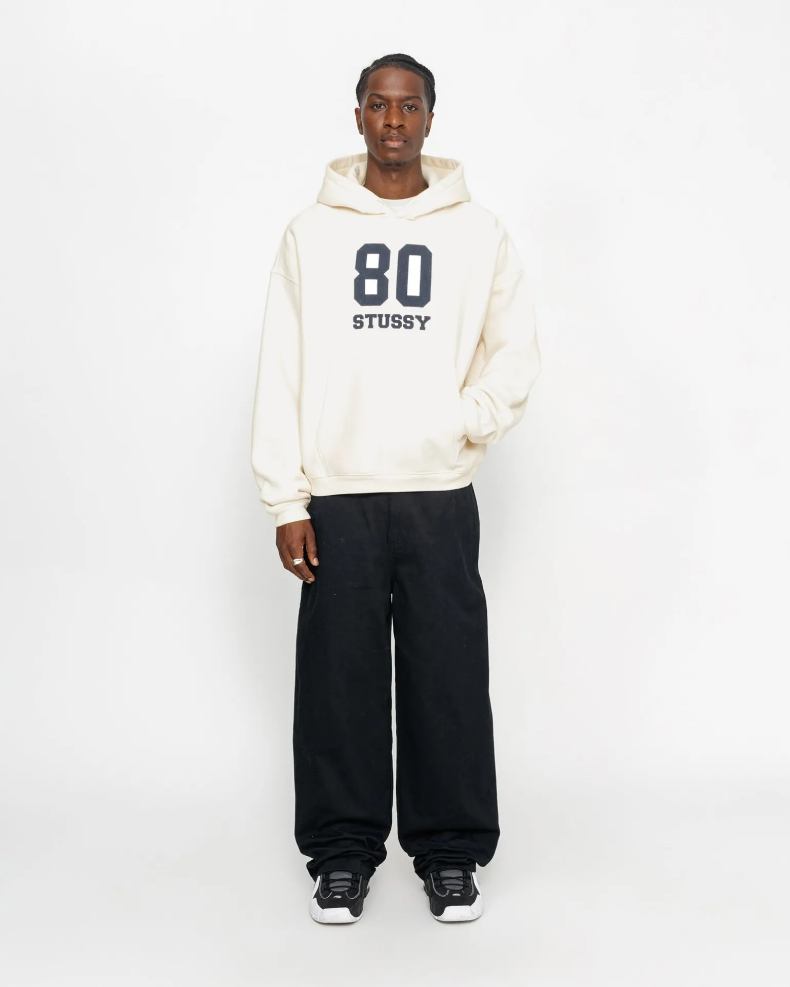 Weit geschnittenes Kapuzensweatshirt aus einer 448 g schweren Baumwollmischung. Stüssy Logo im Siebdruckverfahren auf der Vorderseite.