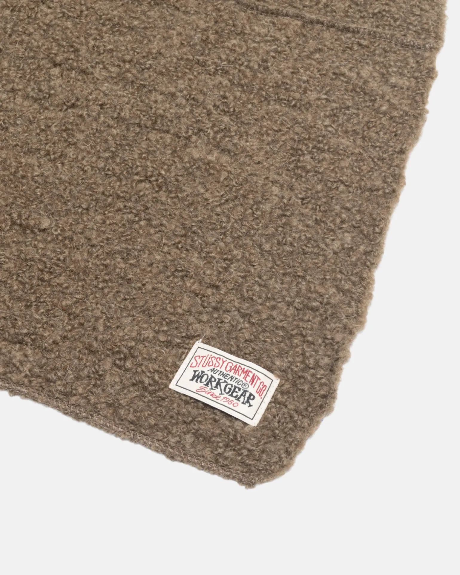 Strukturierter Schal aus einer Woll-Alpaka-Mischung. Stüssy Workgear Label am Rand aufgenäht.