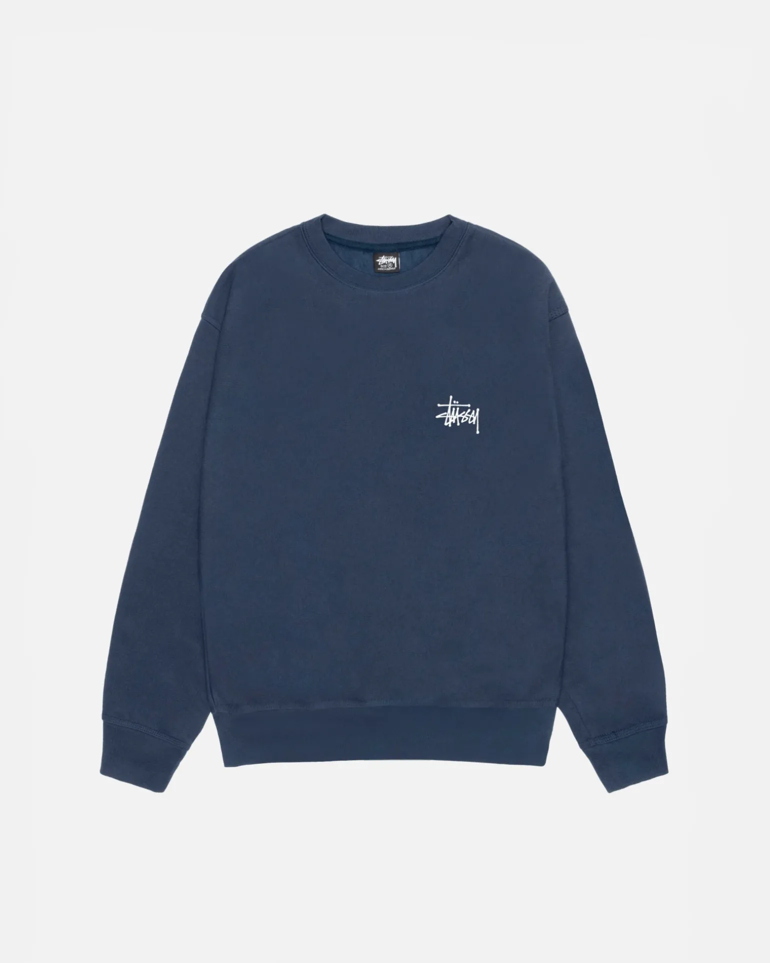 Oversized crewneck sweatshirt in a heavy 12.7oz cotton blend. Screenprinted Stüssy basic stock logo.