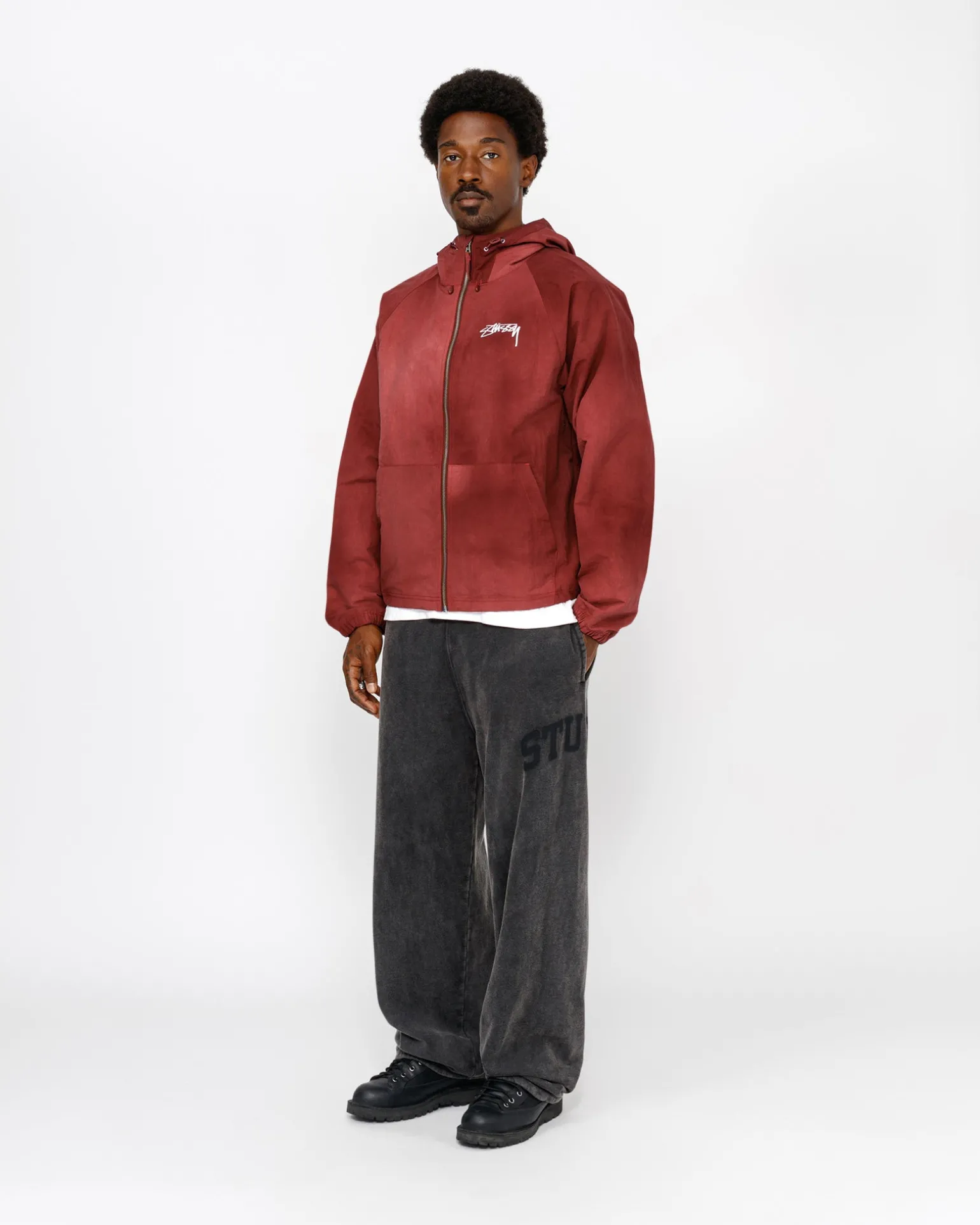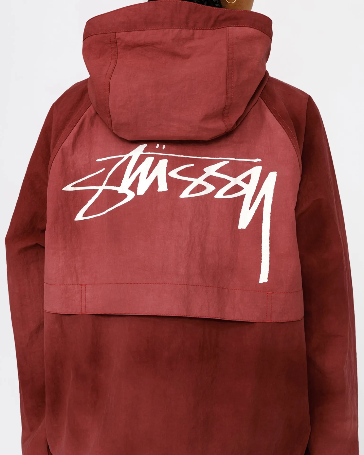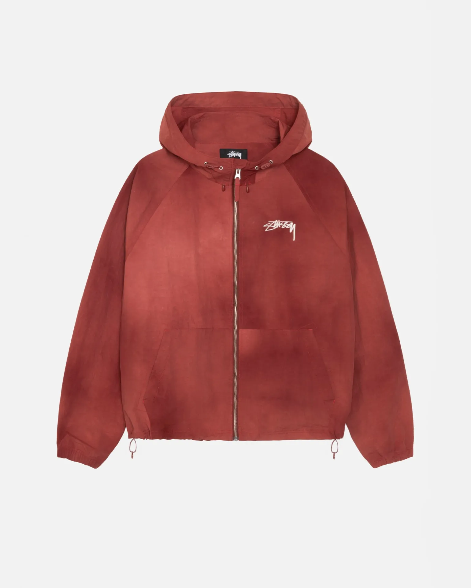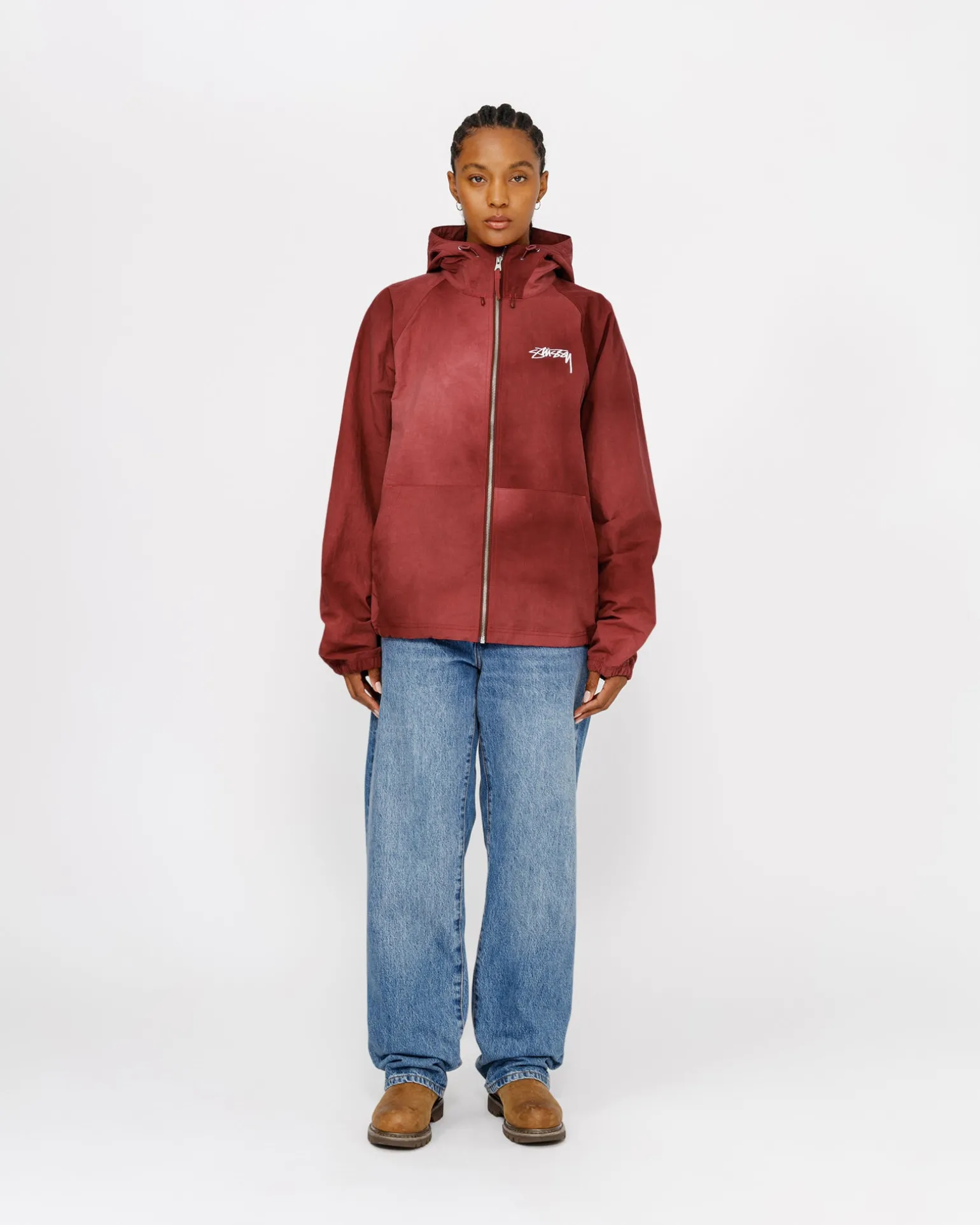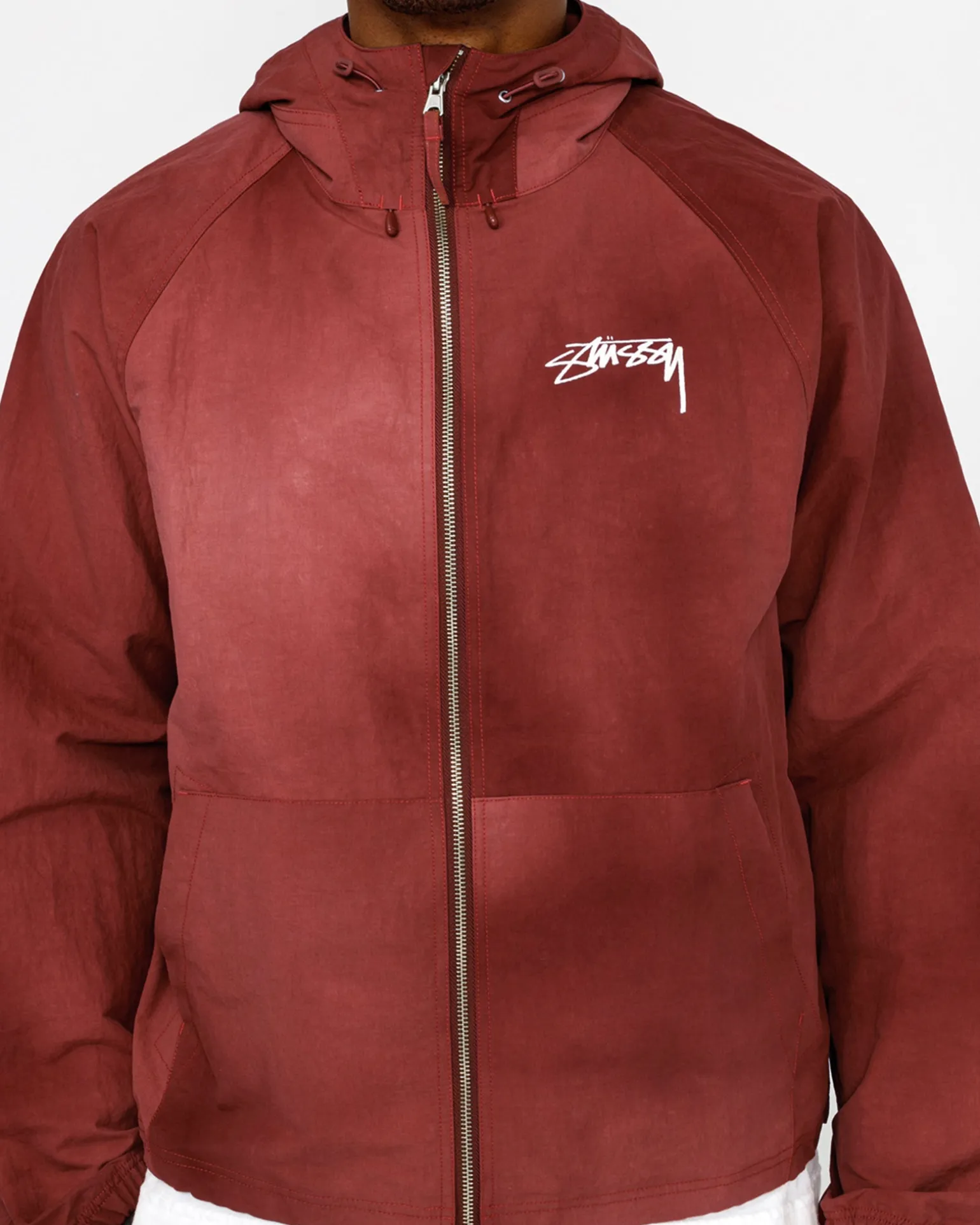 Weite Shell-Jacke aus strukturiertem Wave-Dyed-Nylon. Mit Reißverschluss an der Vorderseite und verstellbaren Kordelzügen an Kapuze und Saum. Gedrucktes Stüssy Smooth Stock Logo auf der linken Brust und auf dem Rücken.