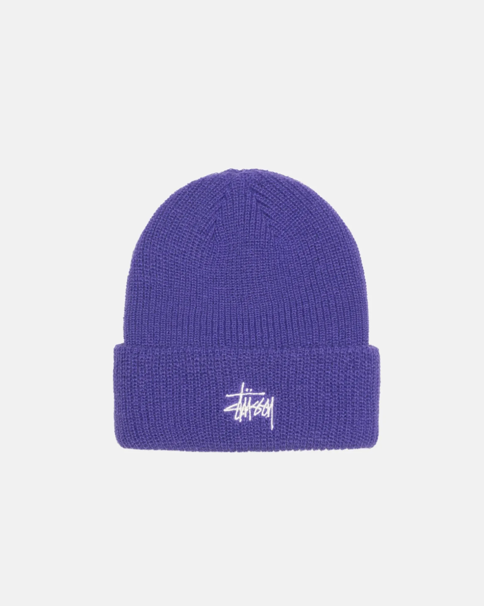 Eng anliegendes Beanie mit weicher Rippenstruktur. Stüssy Basic Stock-Logo Stickerei auf der Vorderseite.