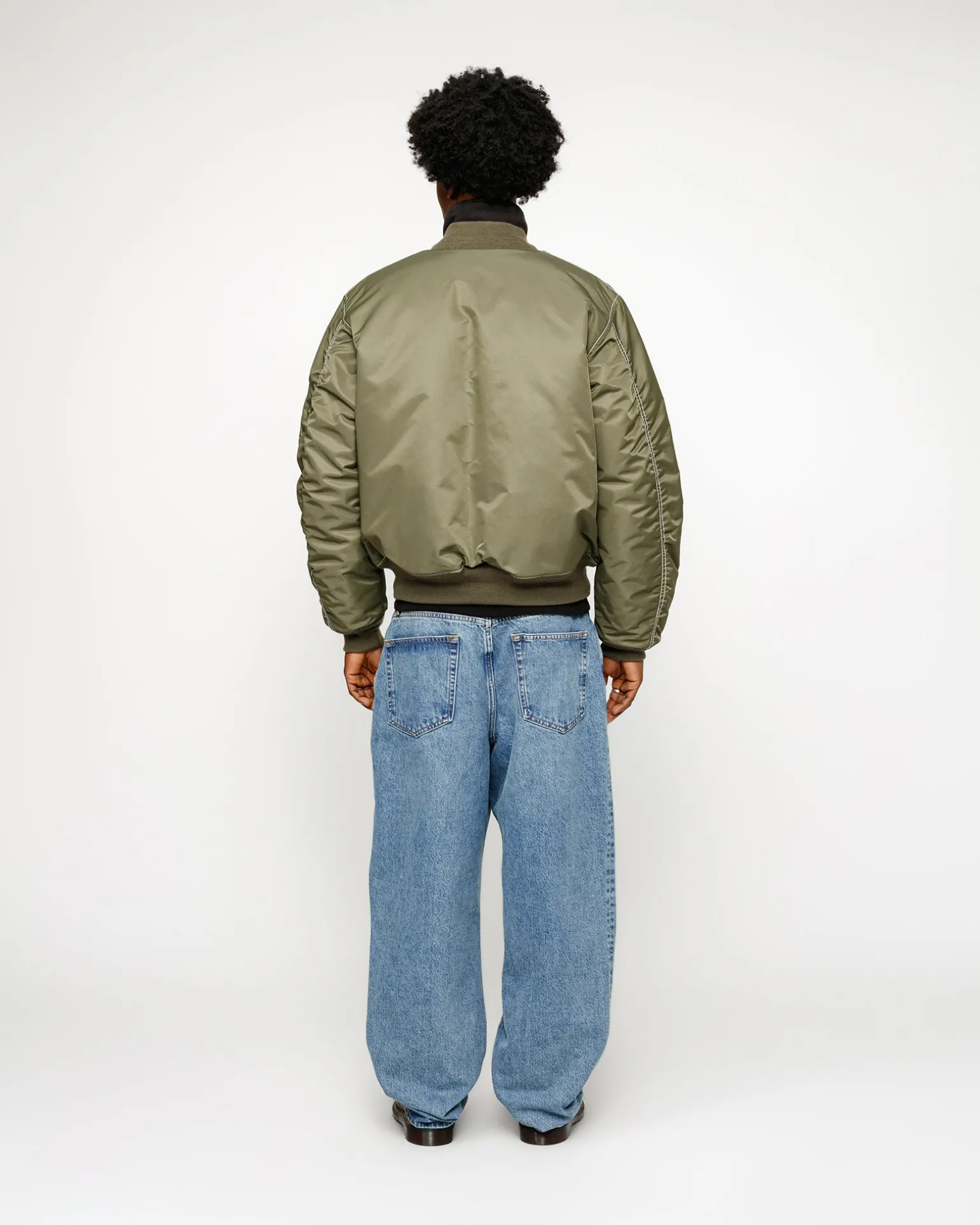 Reversible bomber jacket in durable water-repellent nylon with a quilted lining. Relaxed fit featuring a sleeve pocket, exterior flap pockets and interior welt pockets. Embroidery at the lower front.