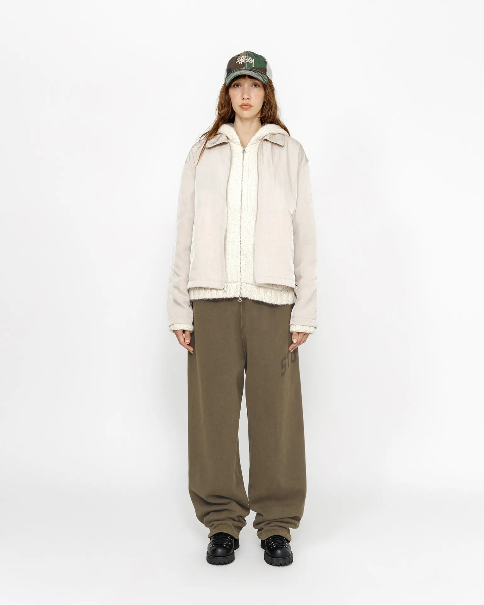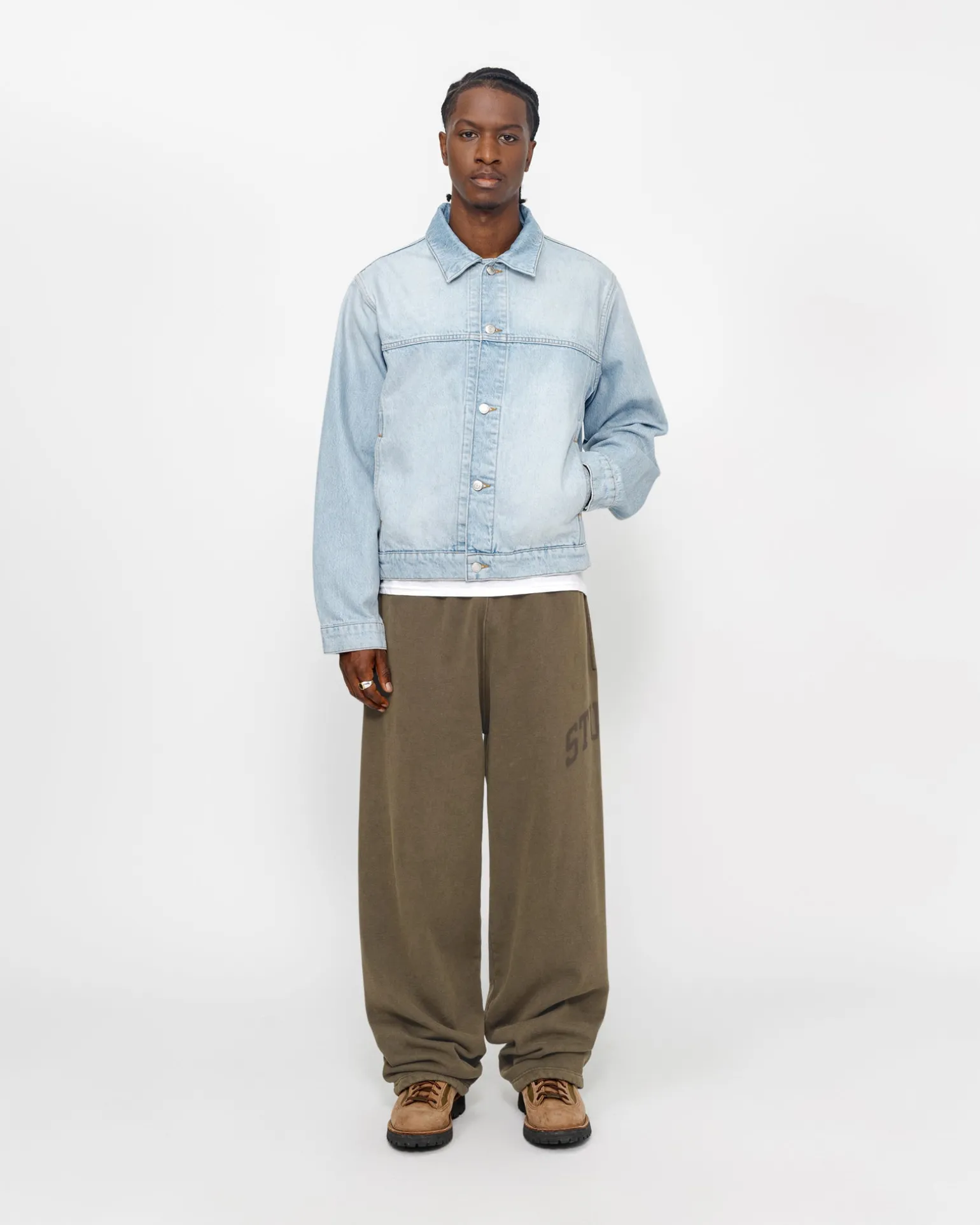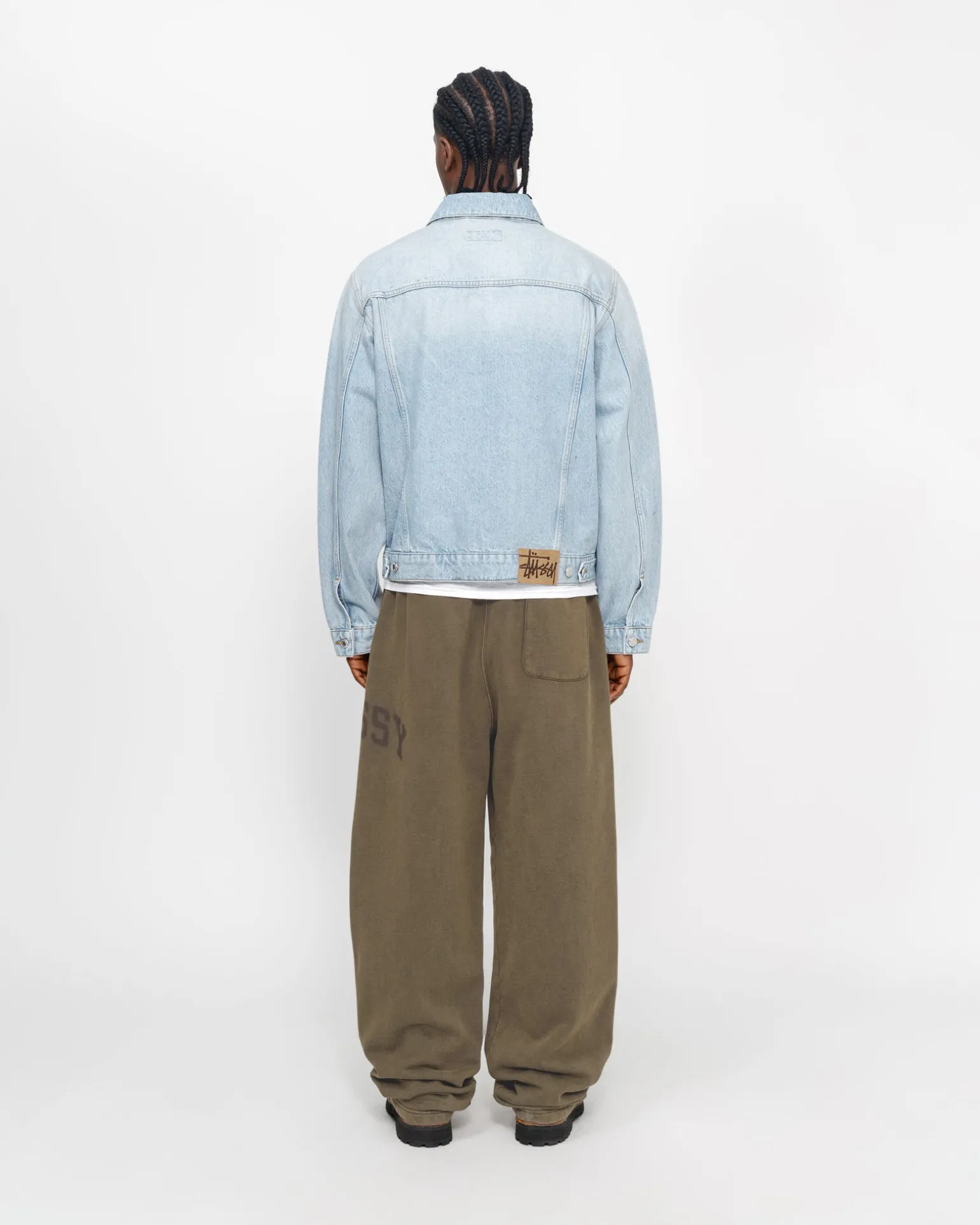 Weit geschnittene Jogginghose aus einer 425 g schweren Baumwollmischung mit verblasster Waschung. Stüssy Arch Logo auf der Seite.