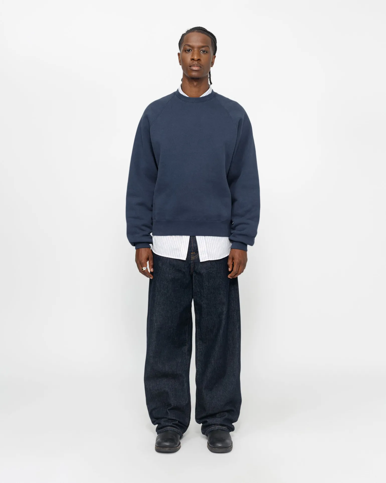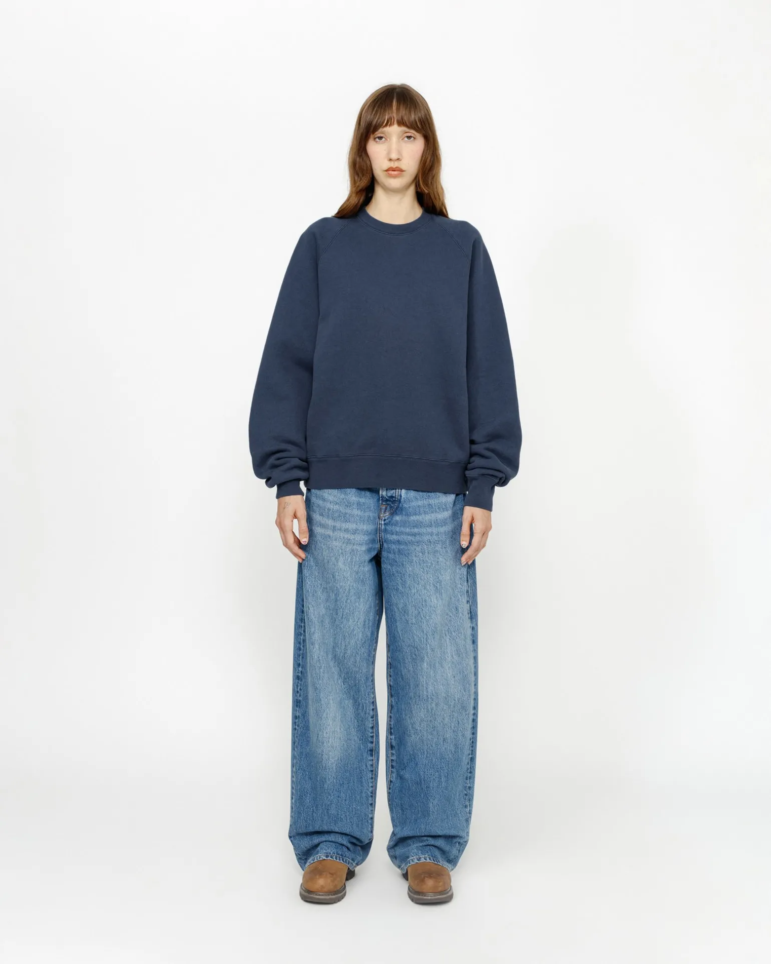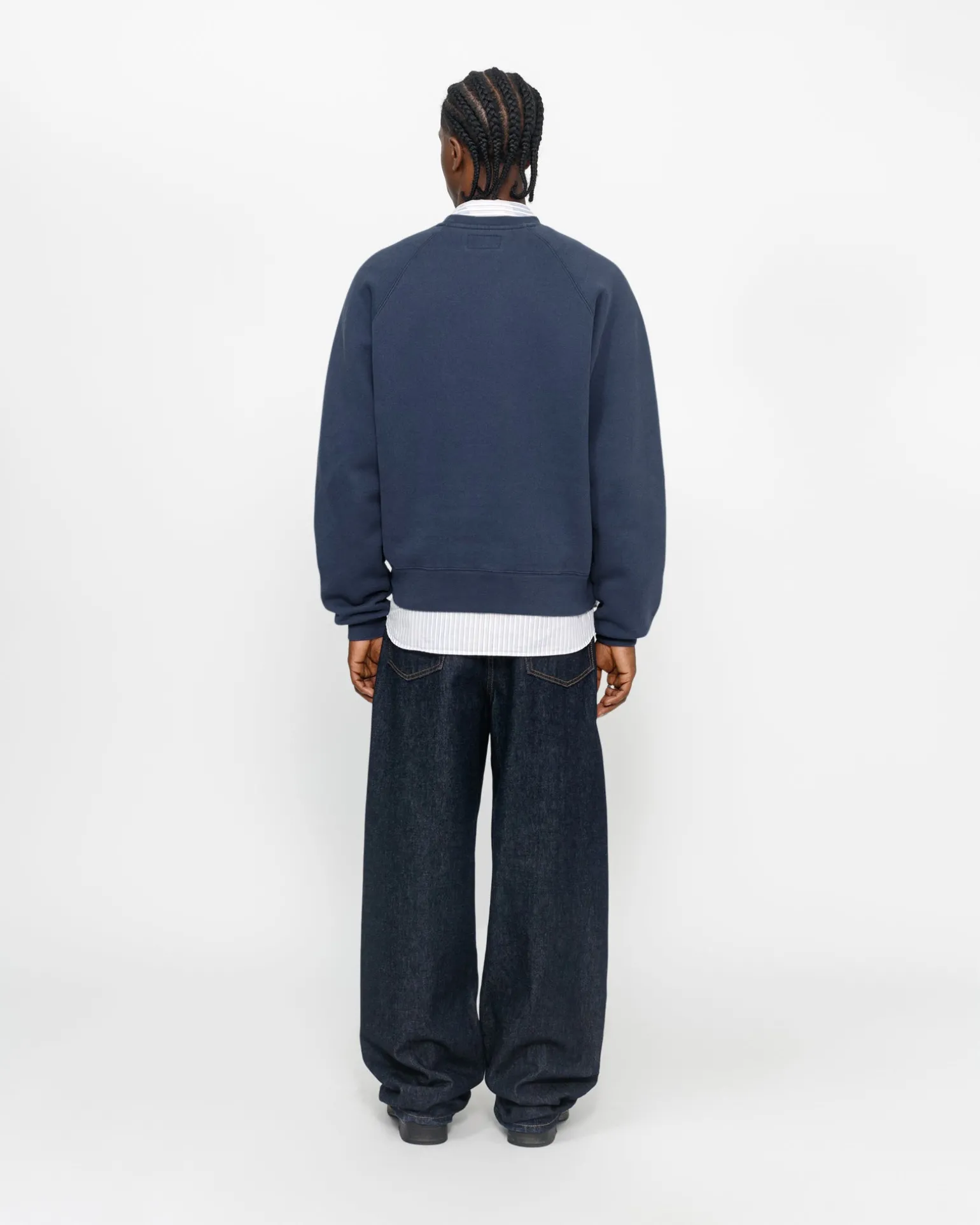Übergroßes Sweatshirt mit Rundkragen aus 448 g schwerem Baumwollmischfleece Stüssy Authentic Workgear Label auf der Seite eingenäht.