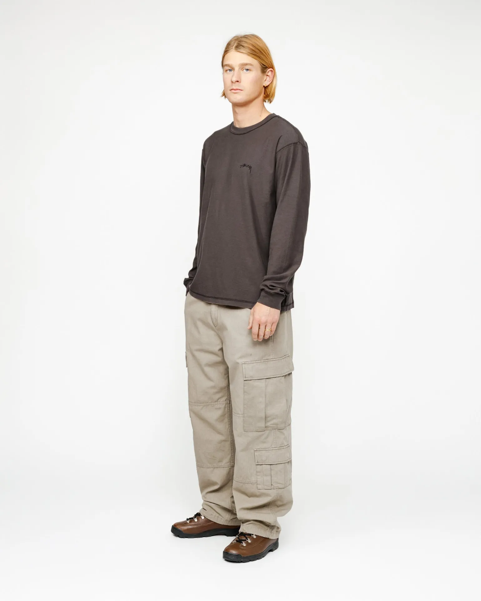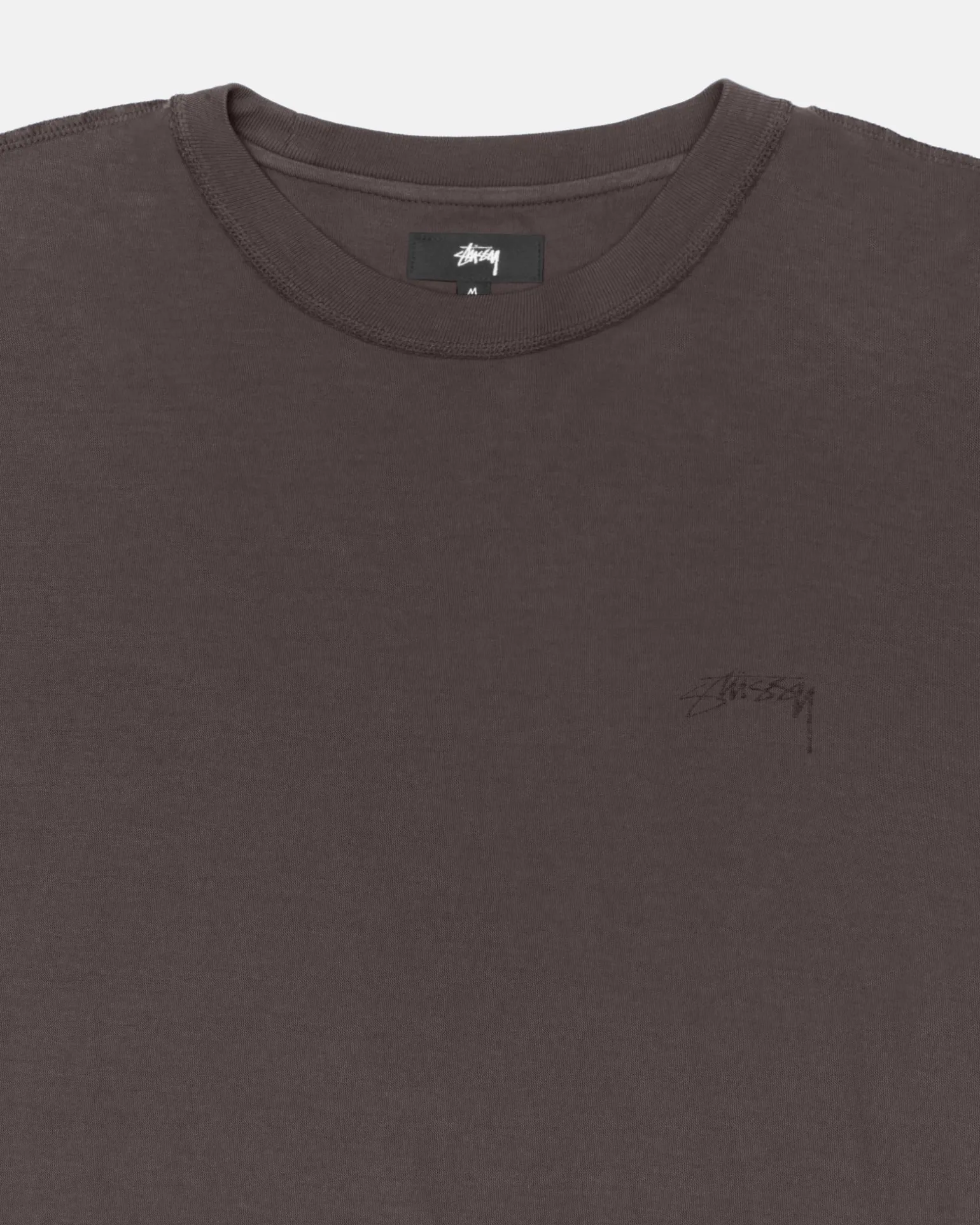 Weit geschnittenes T-Shirt aus pigmentgefärbter Baumwolle mit innenliegenden Nähten. Gedrucktes Stüssy einfach Stocklogo auf der linken Brust.