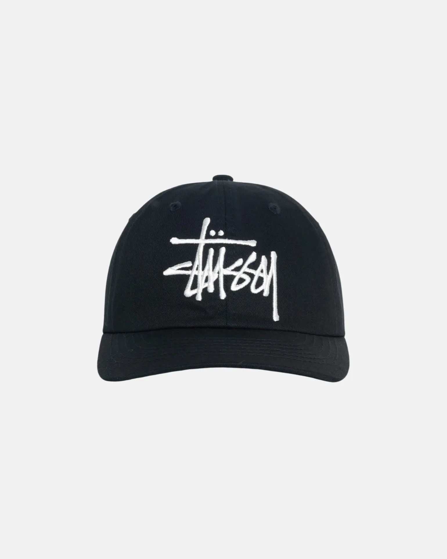 Low profile six panel twill cap. Stüssy basic stock logo embroidered at the front and back.