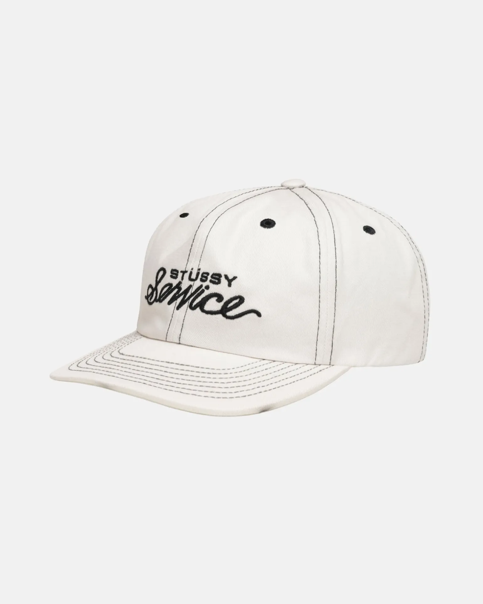 Mid-Depth-Cap mit sechs Panels aus Baumwoll-Twill. Gesticktes Stüssy-Artwork auf der Vorderseite.