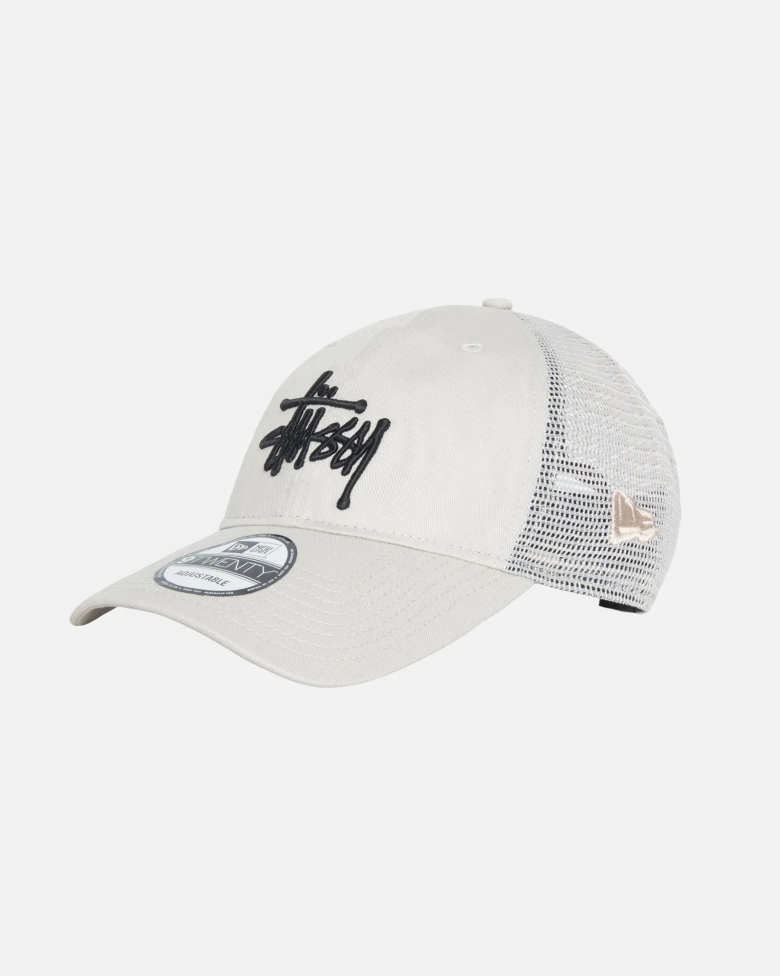 Eng anliegende New Era 9TWENTY Trucker-Cap mit sechs Panels aus Baumwoll-Twill. Gesticktes Stüssy Basic Stock Logo.