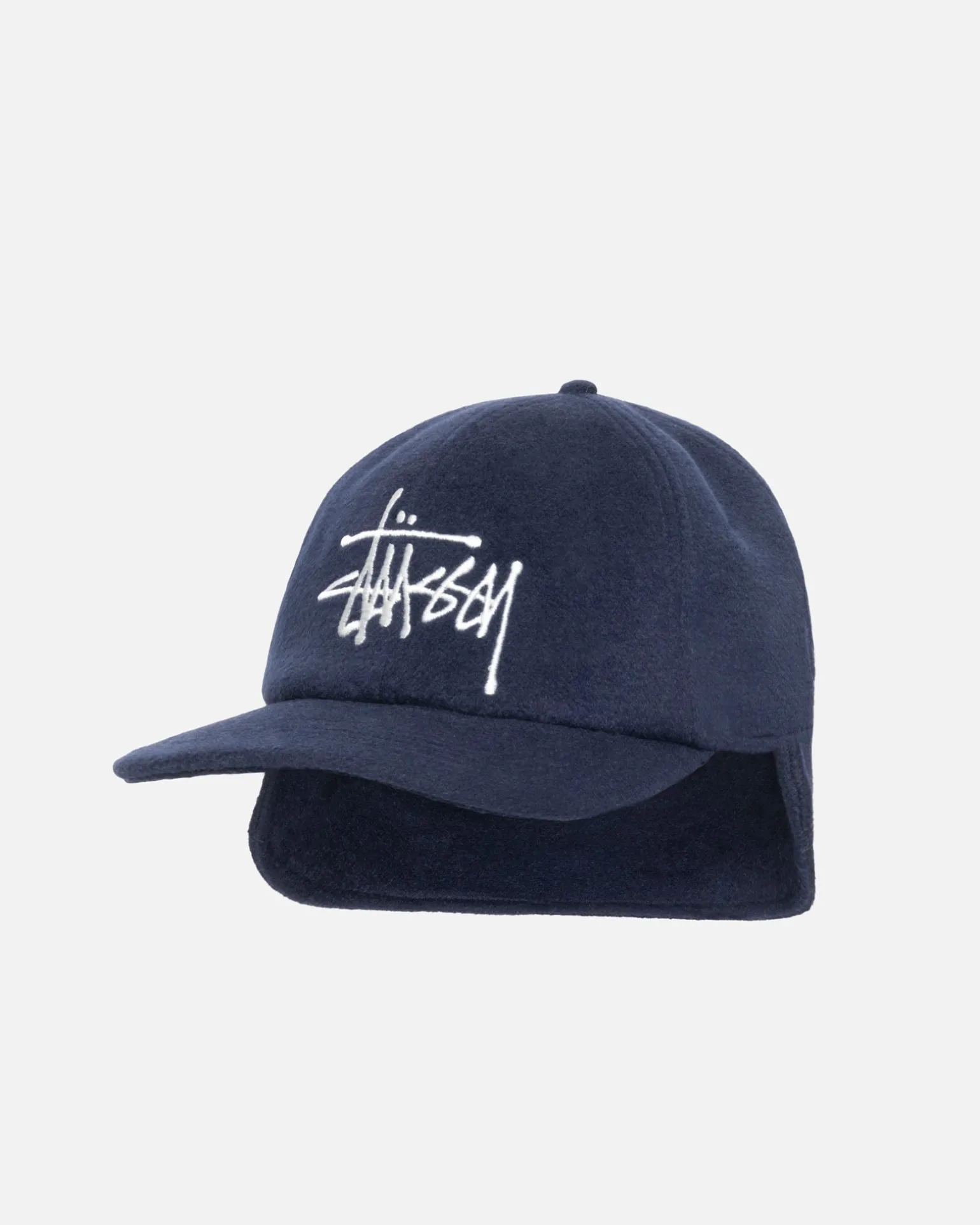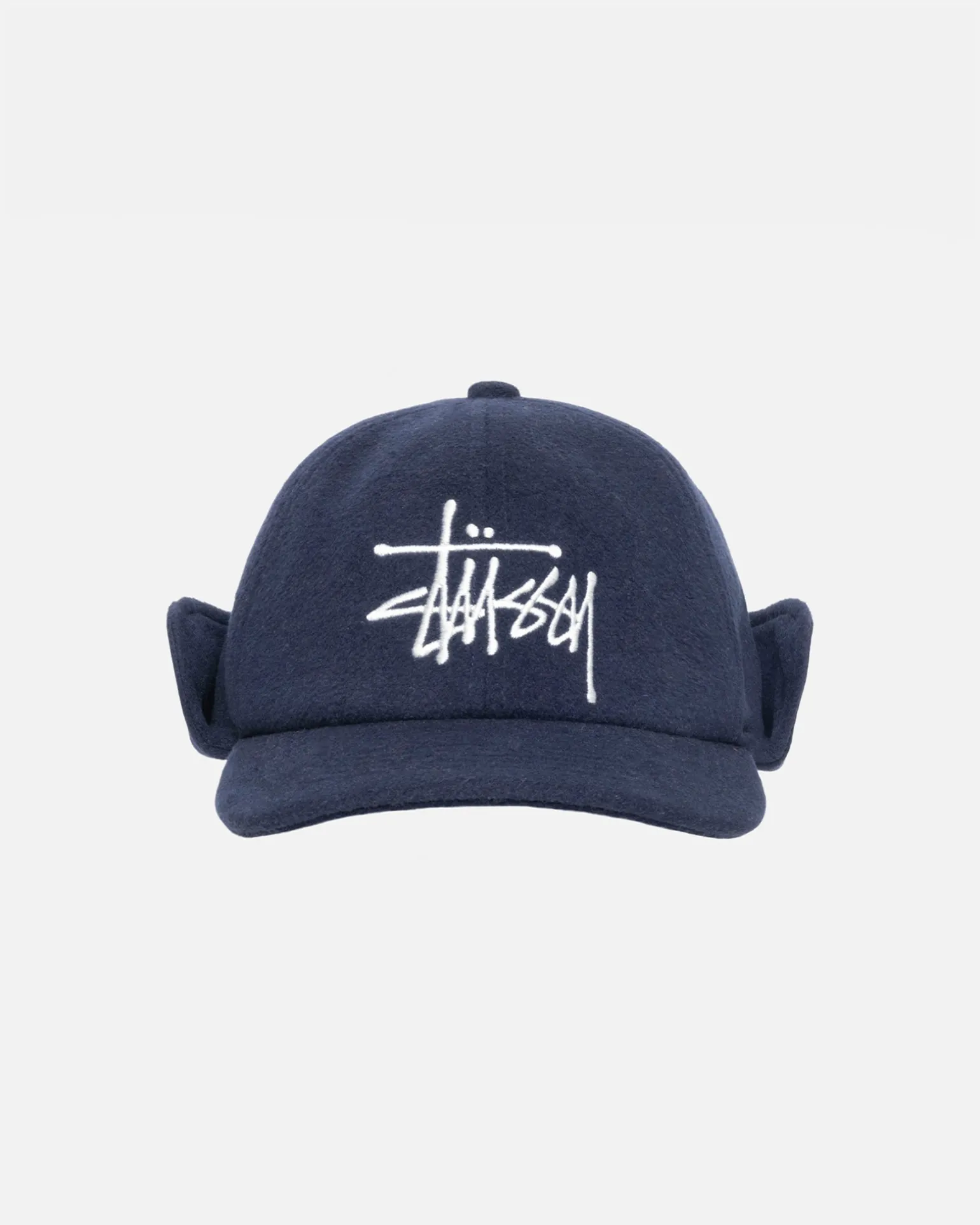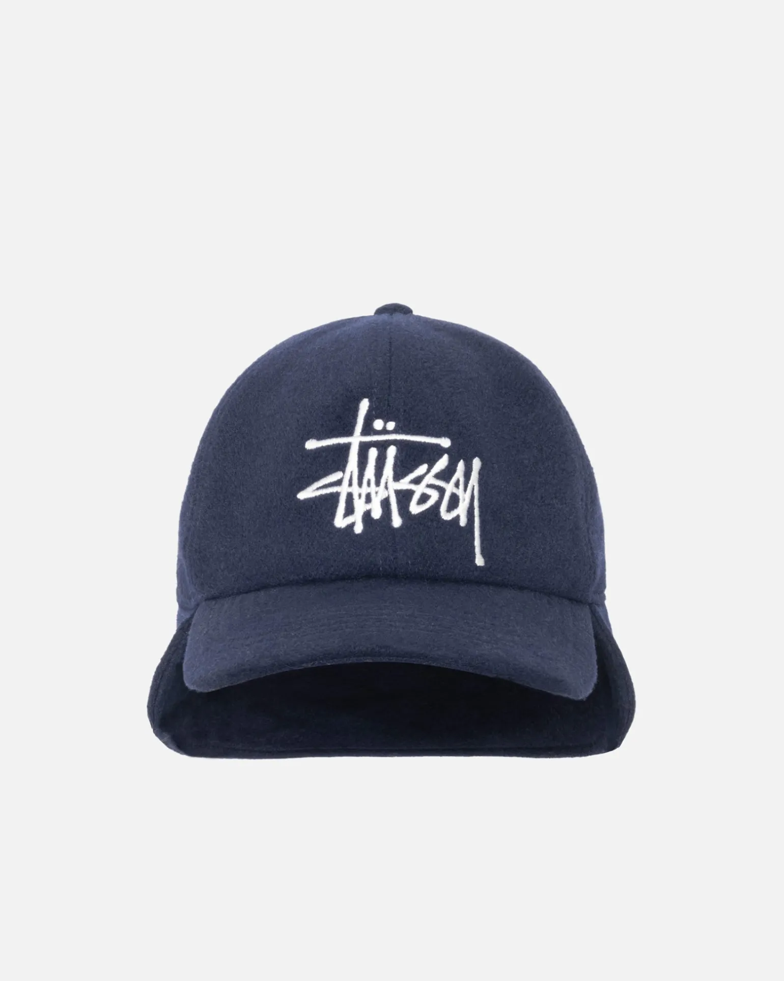 Low-Profile-Kappe mit sechs Panels aus einer Wollmischung. Ohrklappen-Design mit gesticktem Stüssy Basic Stock-Logo.