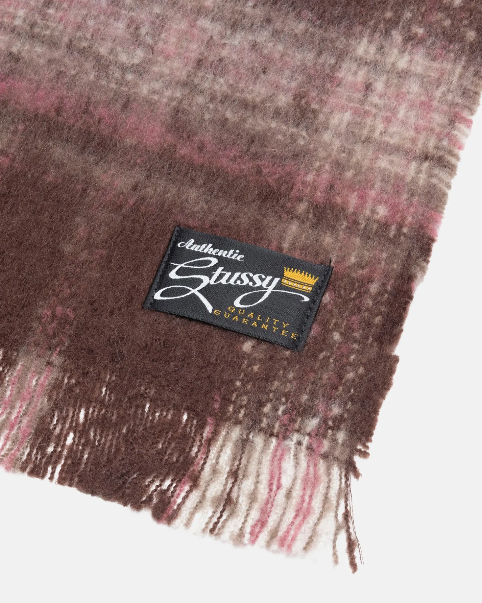 Karierter Schal mit Fransenkanten. Authentisches Stüssy Label am Ende aufgenäht.