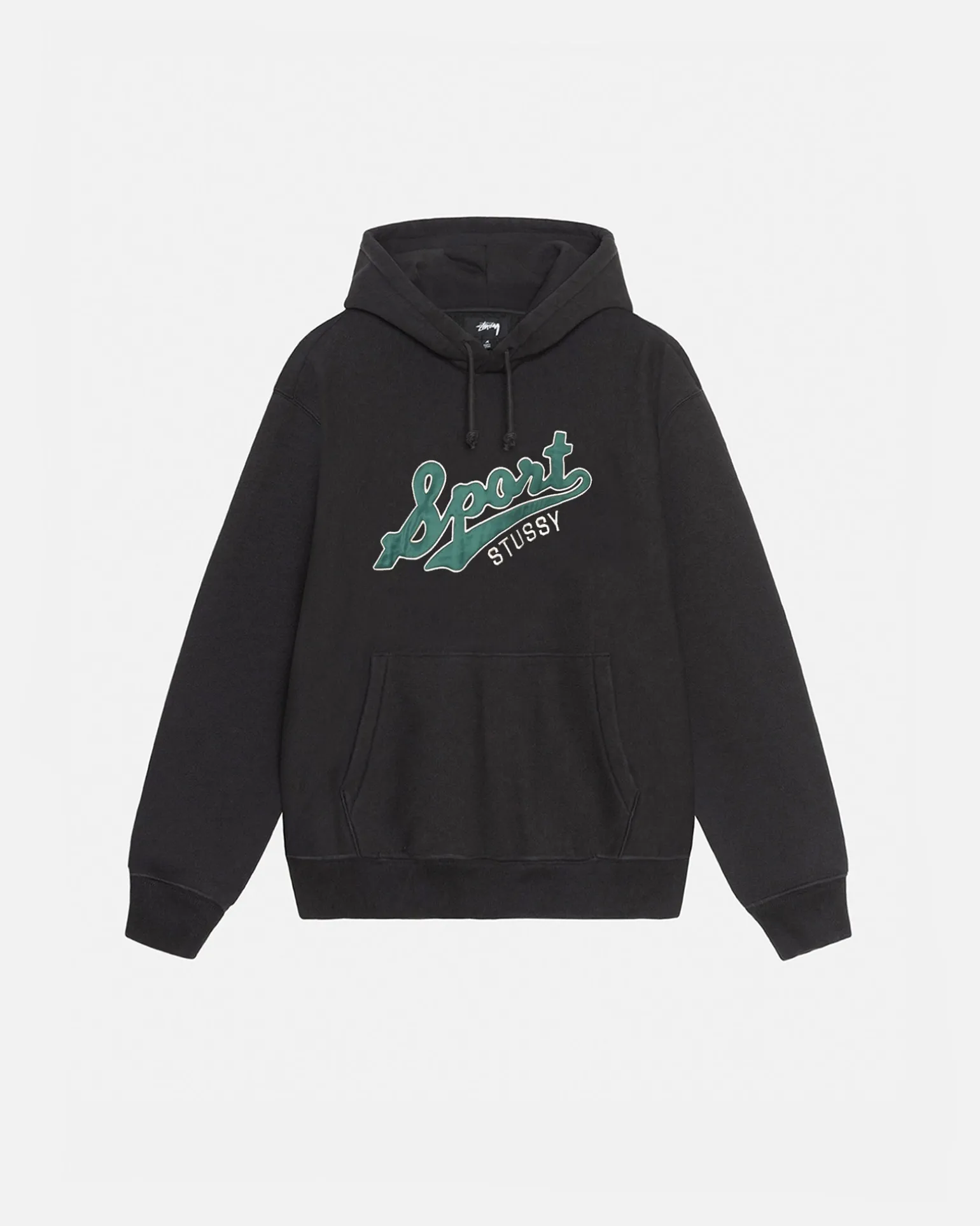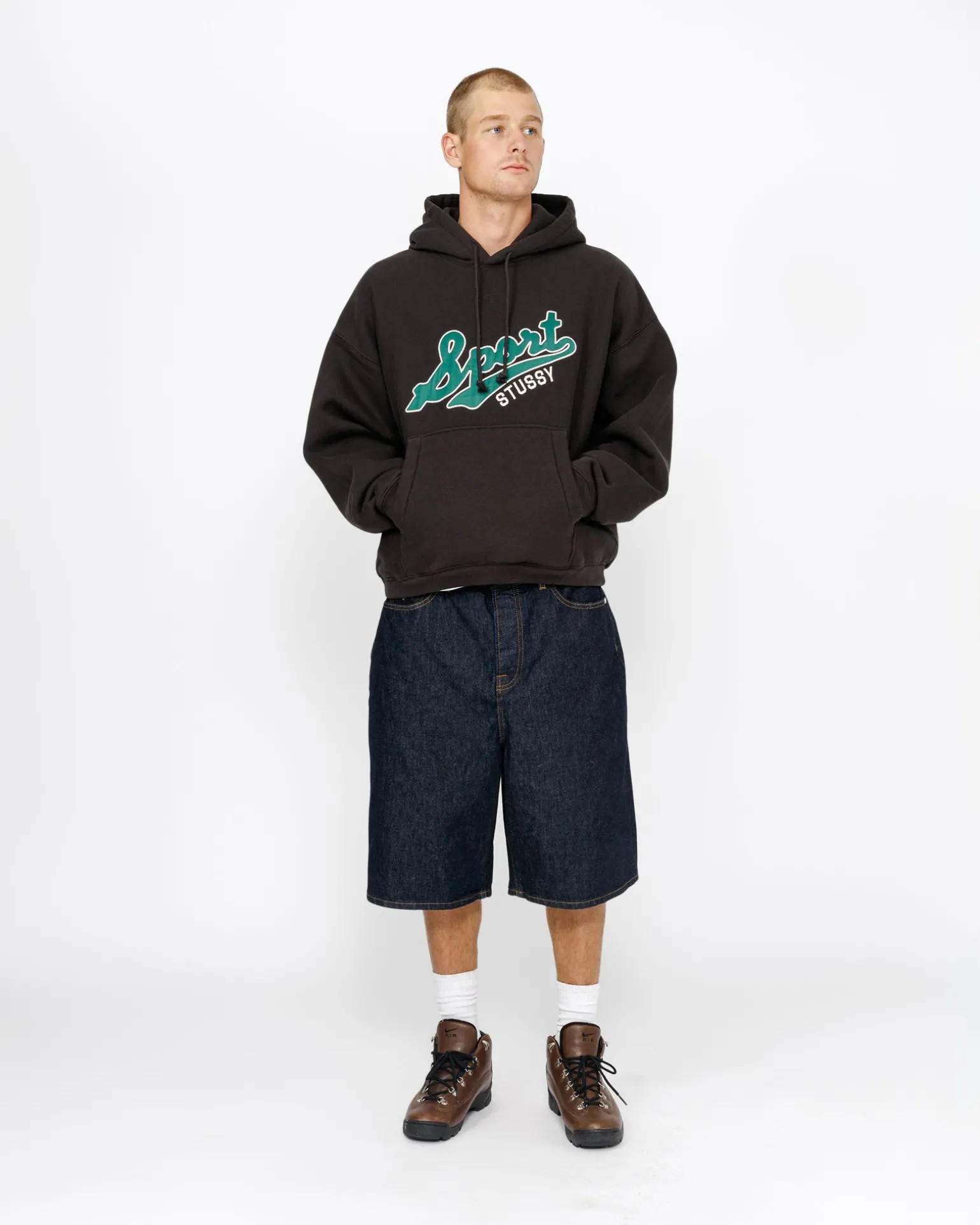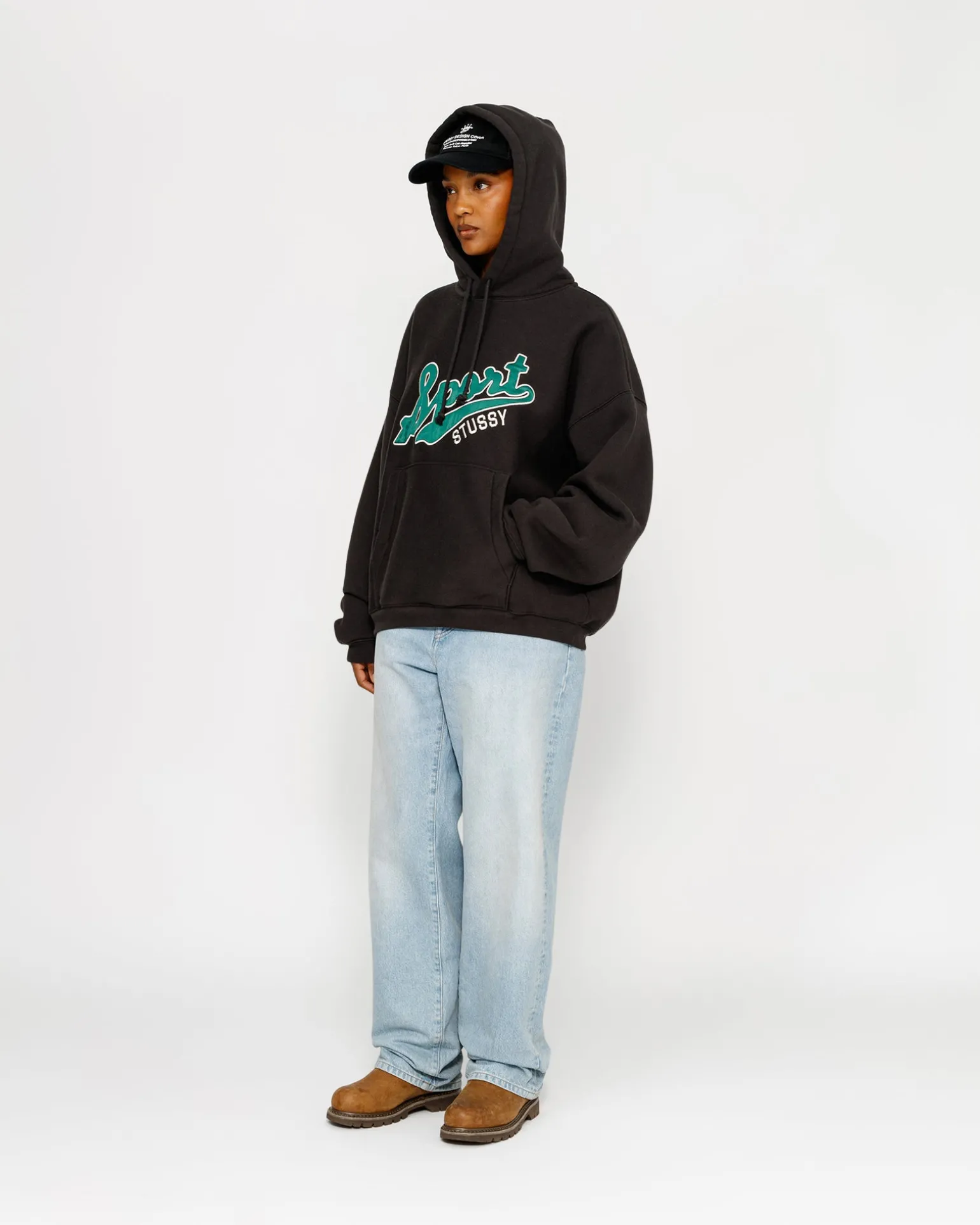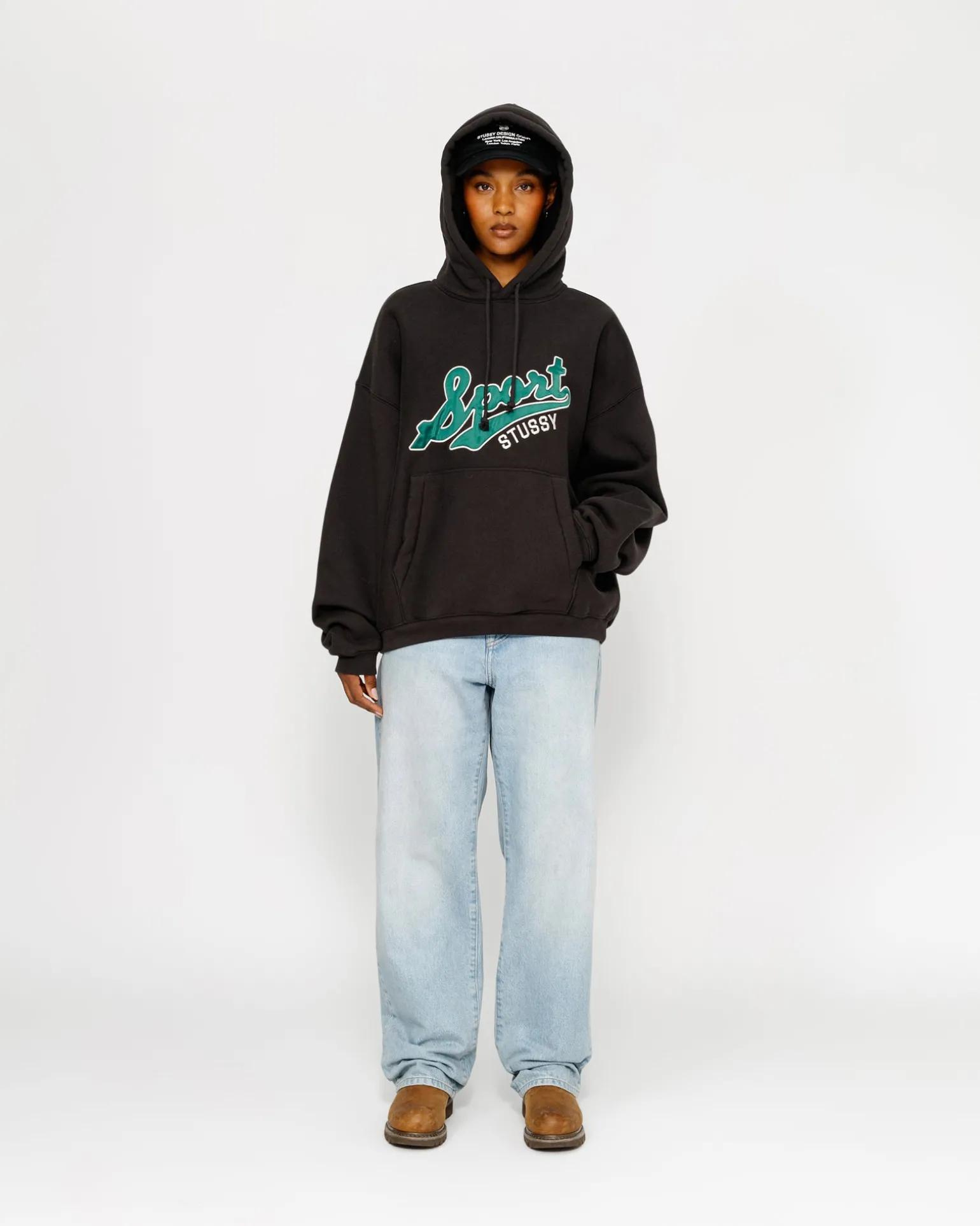 Übergroßes Kapuzensweatshirt aus 448 g schwerem Baumwollmischfleece. Mit Satinaufnäher mit Stüssy Sport-Stickerei.