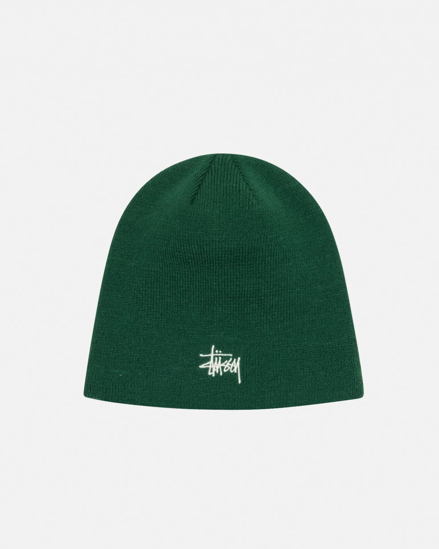 Eng anliegendes Skullcap-Beanie mit gesticktem Stüssy Basic Stock Logo auf der Vorderseite.