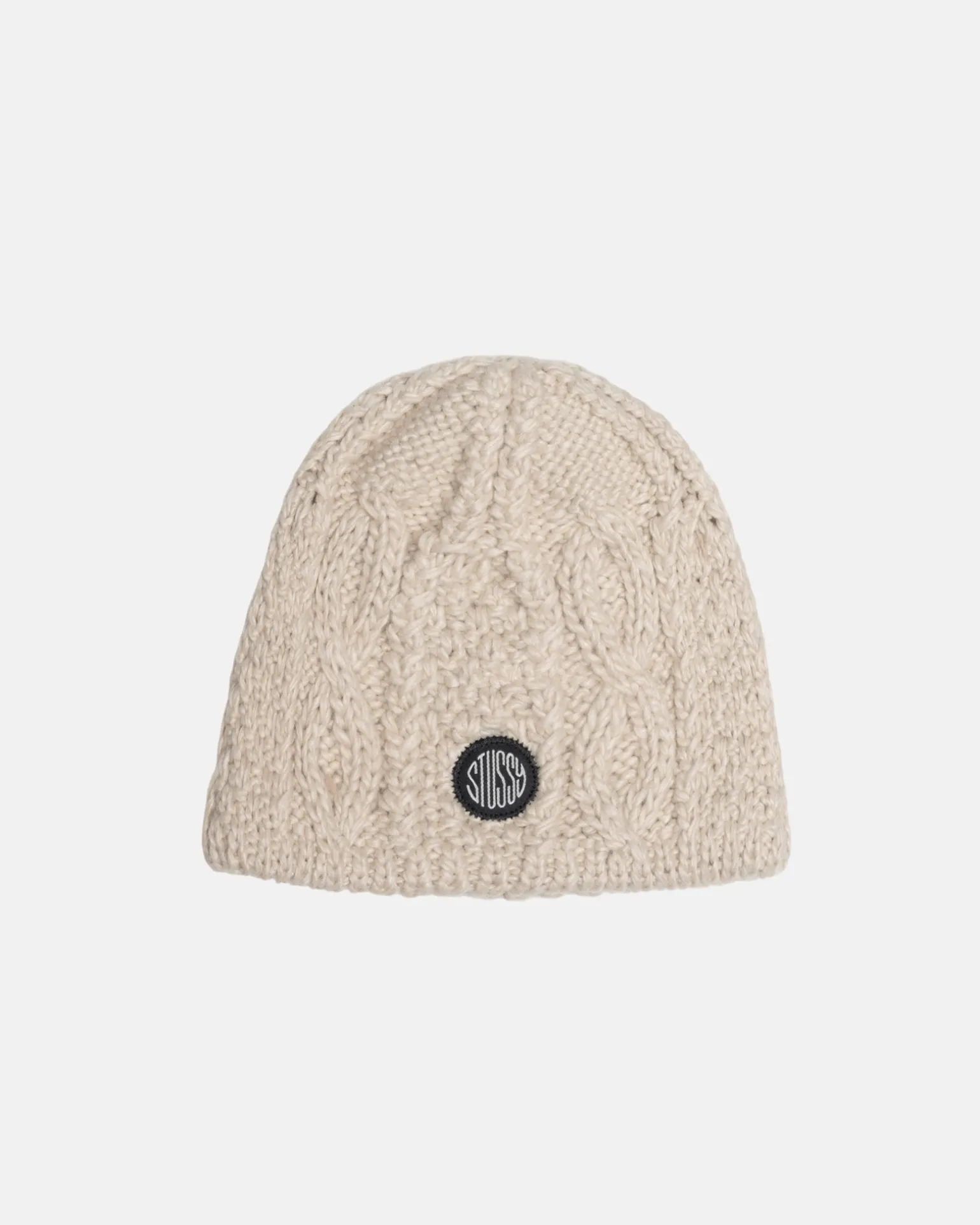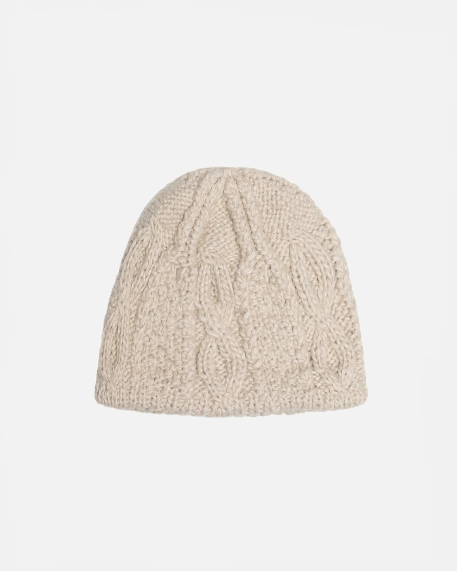 Skullcap-Beanie mit Zopfstrick und Mikrofleece-Futter.