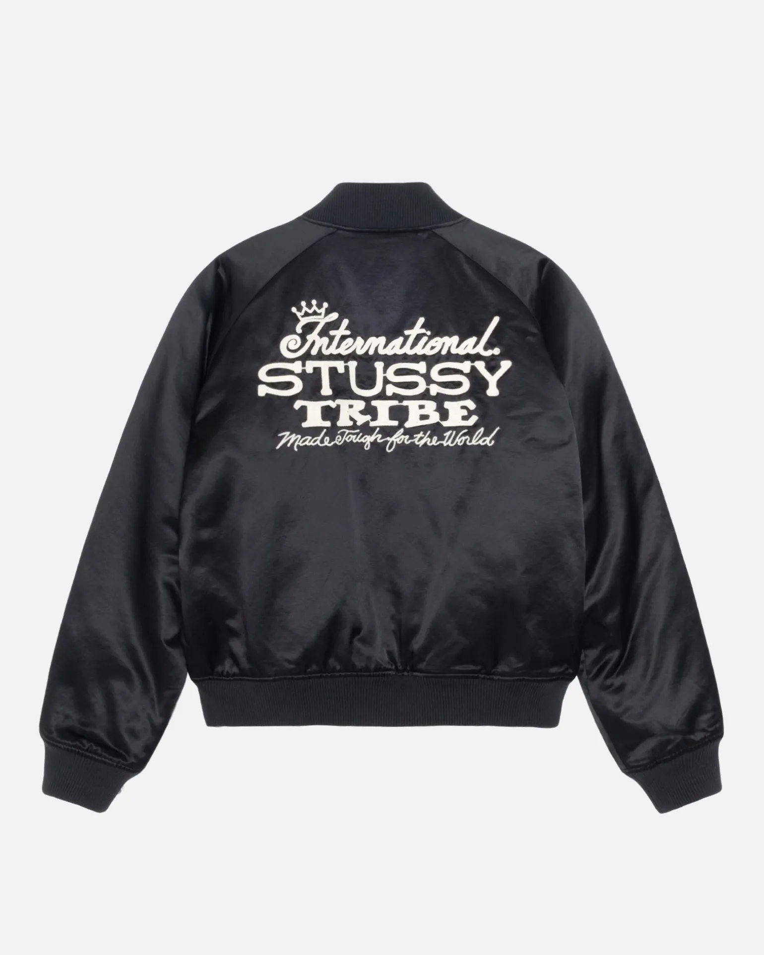 Relaxed jacket in a cotton blend with diamond-quilted padding. Features a snap closure, welt pockets and ribbed trims. International Stüssy Tribe artwork embroidered across the back, Stüssy logo embroidered at the front.
