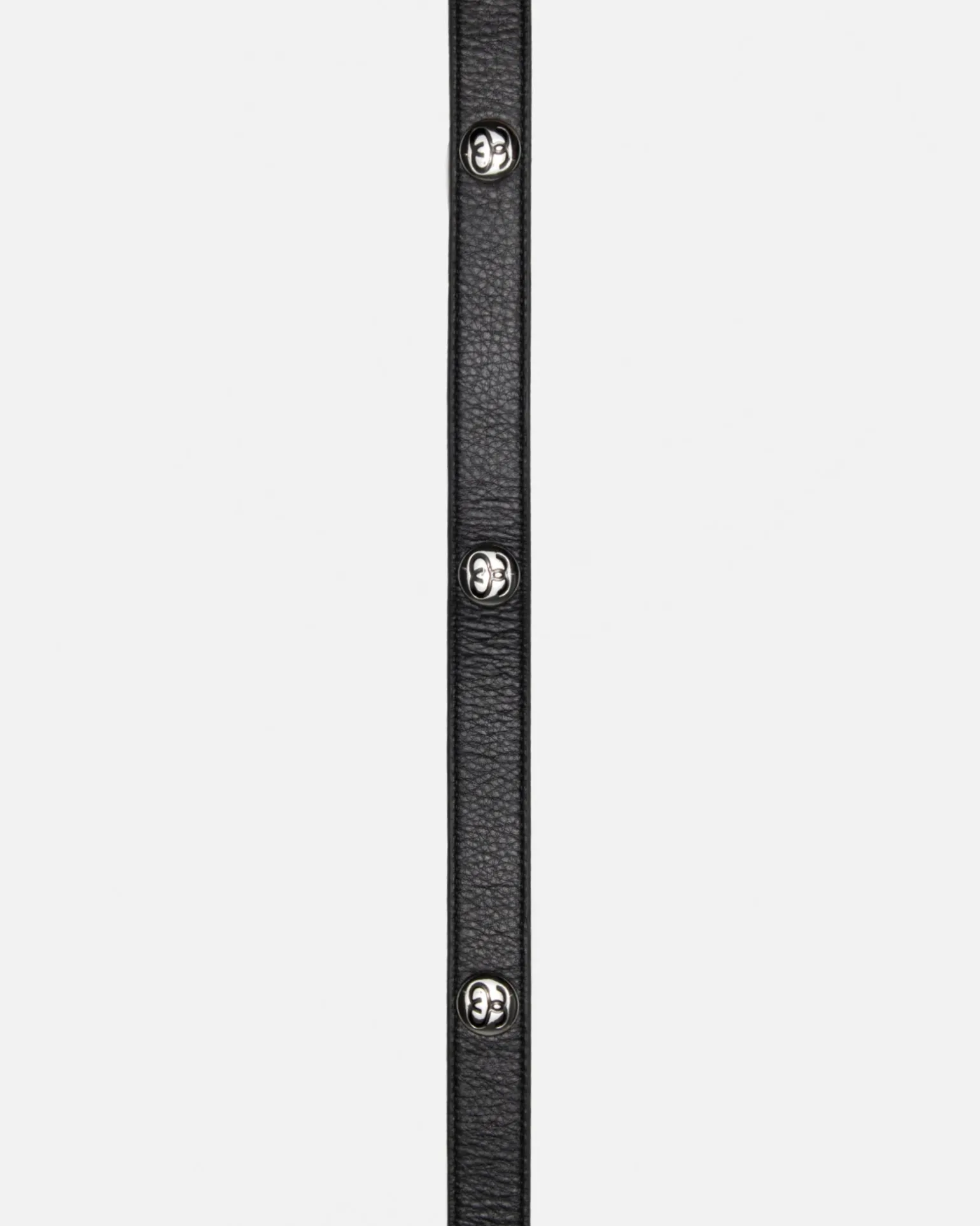 Seitentasche aus Leder mit SS-Link-Nieten entlang des Riemens. Geprägtes Stüssy Smooth Stock Logo auf der Seite.