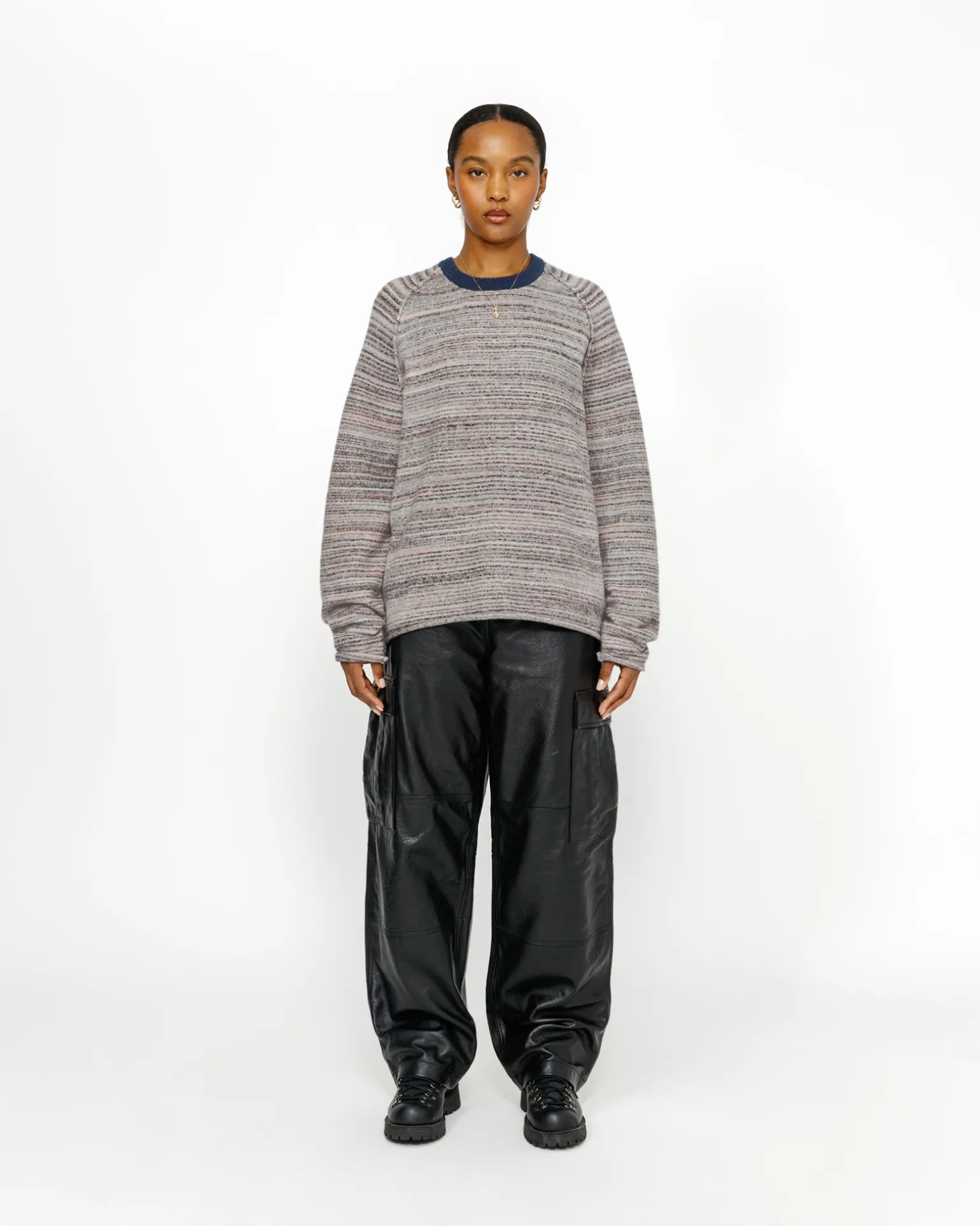 Weit geschnittener Pullover mit Rundkragen aus einer strukturierten Baumwollmischung Stüssy Stock Flag Label an der Seitennaht eingenäht.