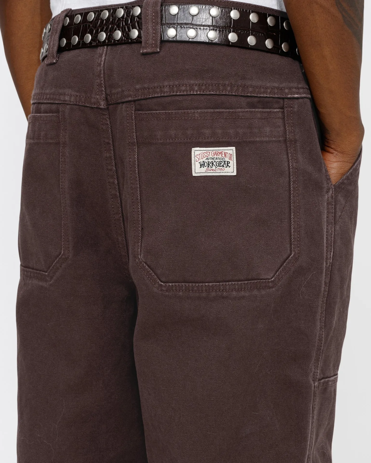 Weit geschnittene Trekkinghose aus Stonewashed Baumwolle. Mit vorgeformten, verstärkten Kniepaneelen und aufgenähtem Stüssy Workgear Label auf der Gesäßtasche.