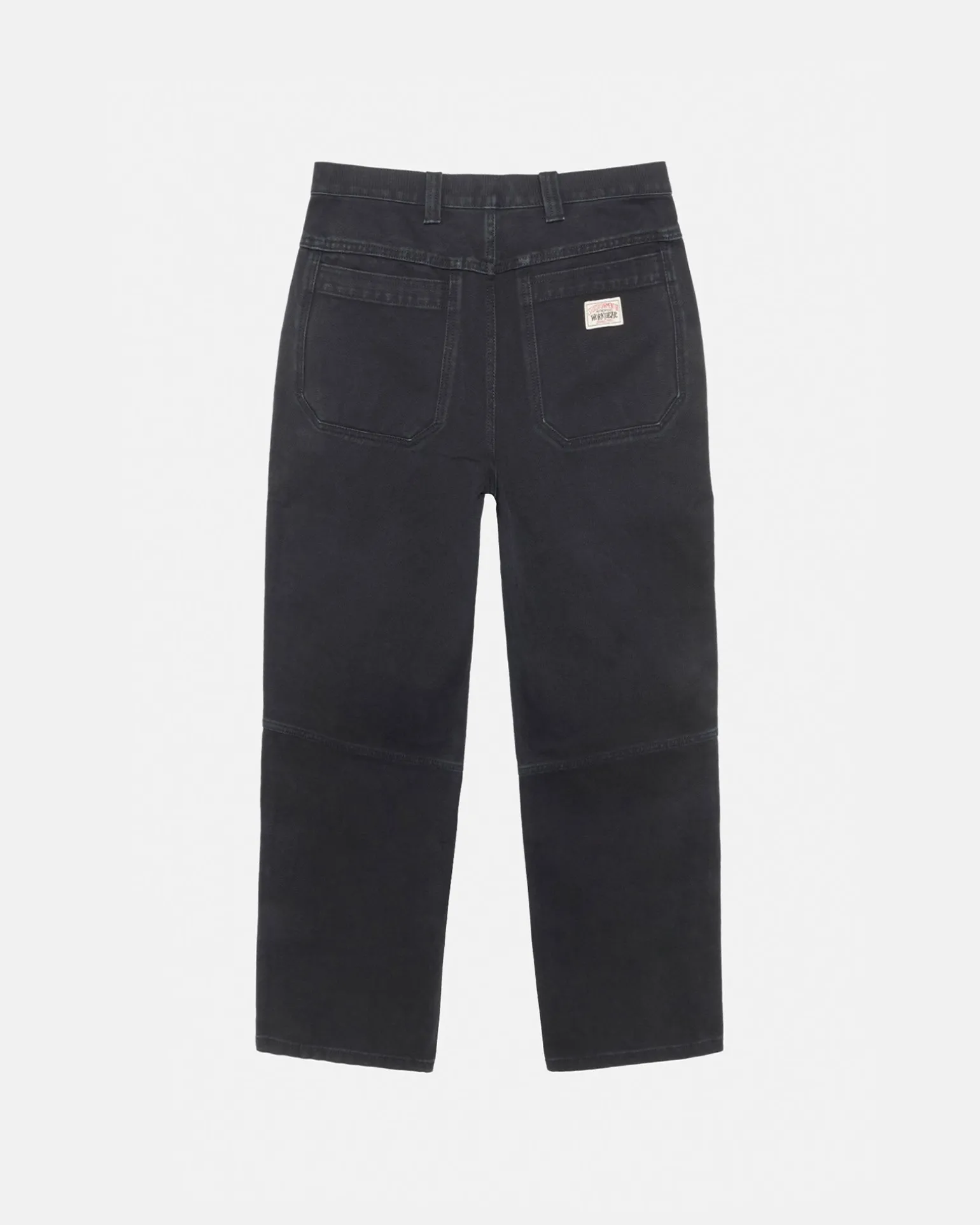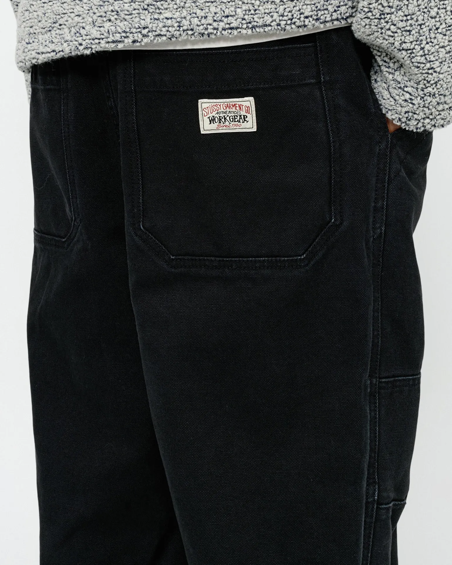 Weit geschnittene Trekkinghose aus Stonewashed Baumwolle. Mit vorgeformten, verstärkten Kniepaneelen und aufgenähtem Stüssy Workgear-Label auf der Gesäßtasche.